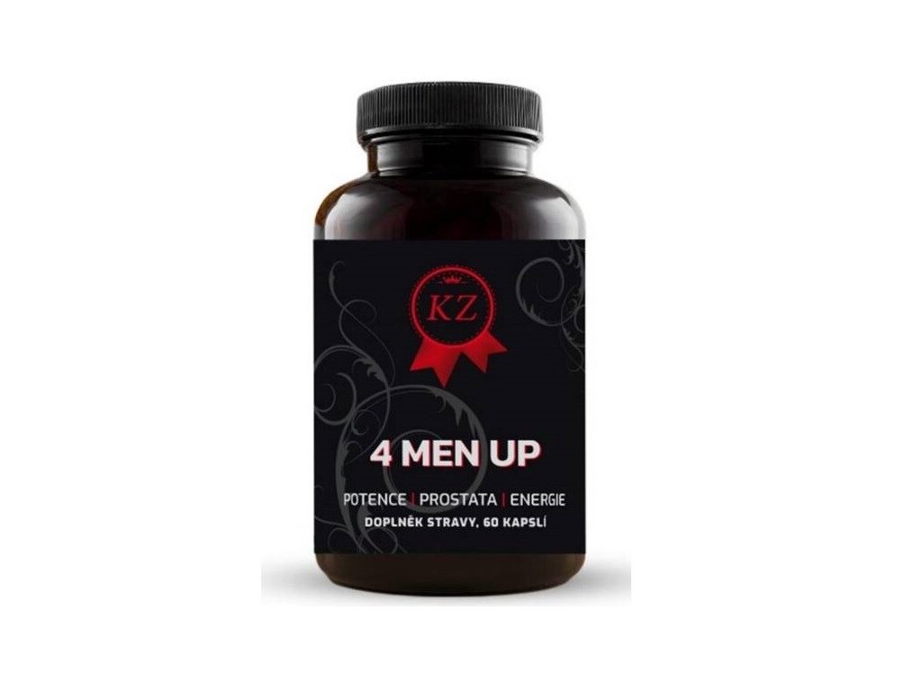 4 Men Up potence&prostata&energie je doplněk stravy ve formě kapslí. Obsahuje rostlinné extrakty a zinek.