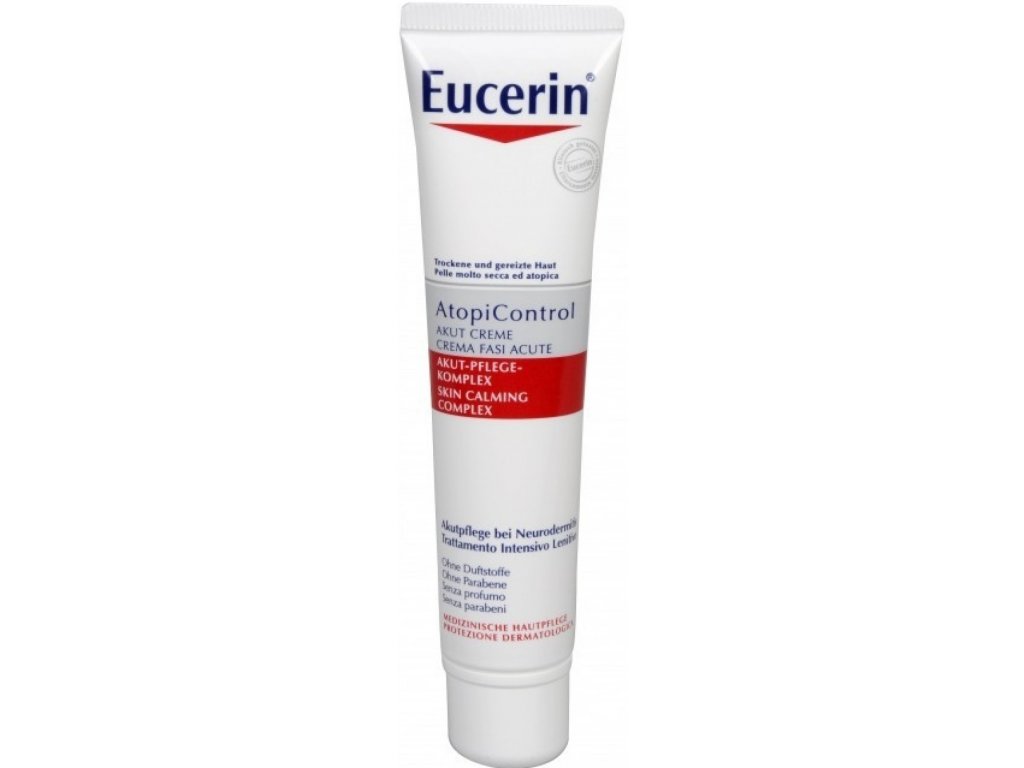 Krém AtopiControl Acut od značky Eucerin okamžitě zklidňuje napjatou a začervenalou pokožku. Perfektně hydratuje a regeneruje. Aktivně pečuje o atopickou pokožku u dospělých i dětí. Obsahuje omega 6 mastné kyseliny, které zklidňují pokožku a napomáhají její regeneraci. Dále v něm najdete i výtažek z lékořice licochalcon A. Ten redukuje podráždění a zarudnutí. Dekandiol zmírňuje pocity svědění a diskomfortu. Krém neobsahuje barviva, parfemace ani parabeny. Můžete jej používat i v akutní fázi atopického ekzému. Používejte od 4 týdnů věku.