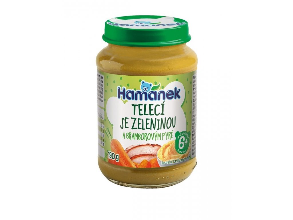 Hamánek Telecí se zeleninou a bramborovým pyré je dětský příkrm vhodný pro děti už od 6. ukončeného měsíce
