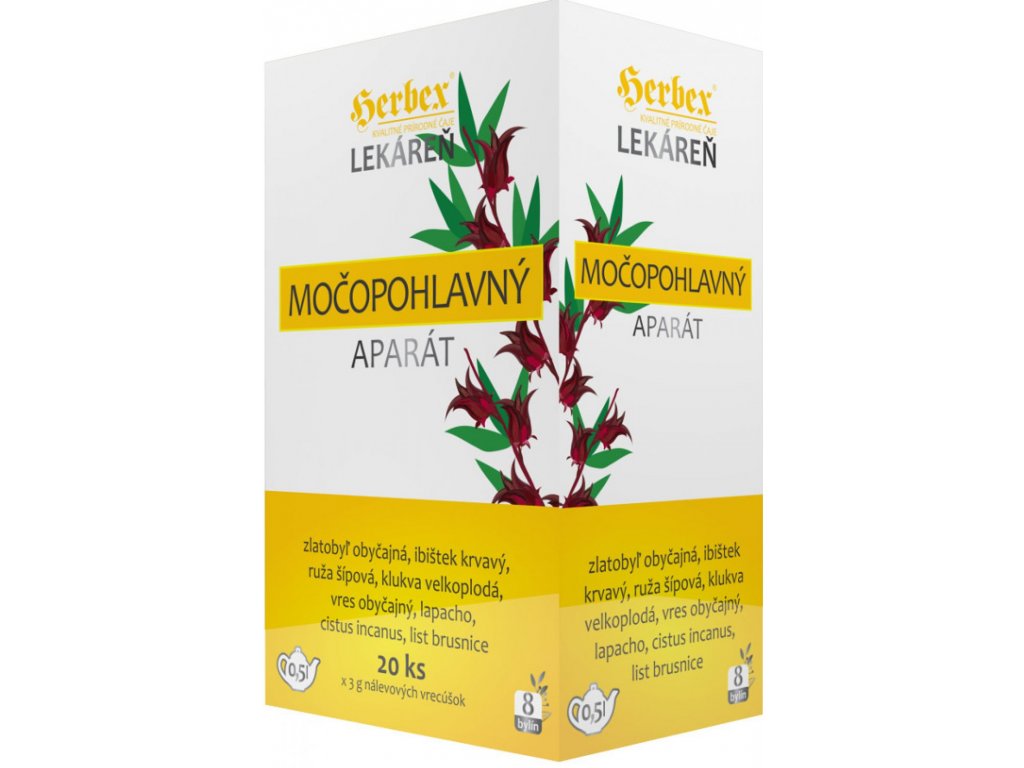 Herbex Močopohlavní aparát je doplněk stravy. Zlatobýl, ibišek, šípky, a brusinka připívají k normálnímu vylučování močovým traktem. Cistus a lapacho přispívají k posílení obranyschopnosti organismu.