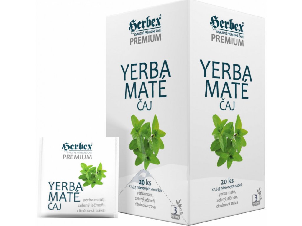 HERBEX Yerba maté je kvalitní přírodní bylinná čaj, který obsahuje Yerba Maté, Zelený Ječmen a Citronovou Trávu.