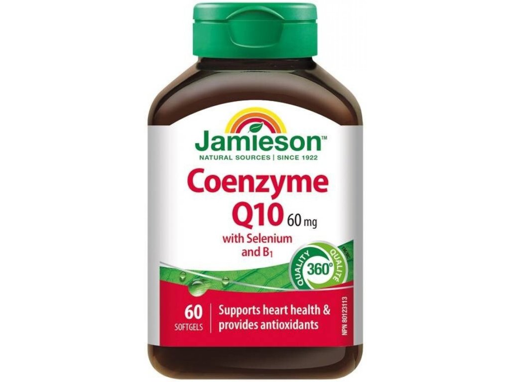 Koenzym Q10 je nezbytnou součástí každé buňky lidského těla, kde se podílí na tvorbě energie. Nejvíce koenzymu Q10 se vyskytuje v orgánech s vysokými požadavky na energii, jako jsou srdce, plíce a játra. S přibývajícím věkem jeho produkce klesá, a proto je vhodné koenzym Q10 doplňovat v potravě. Přípravek Jamieson Koenzym Q10 se selenem a B1 obsahuje kombinaci koenzymu Q10, selenu a vitaminu B1. Selen je stopový prvek nepostradatelný pro lidský organismus. Má vliv na funkci řady enzymů a pomáhá v boji proti volným radikálům. Vitamin B1 se řadí mezi ve vodě rozpustné vitaminy skupiny B. Má příznivý účinek na činnost nervové soustavy a naši psychiku.