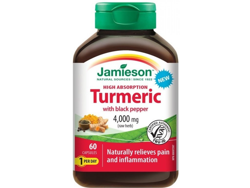 Rostlinný výtažek z kurkumy a černého pepře podpoří zdravé trávení. Jamieson Kurkumin s černým pepřem obsahuje extrakt z kurkumy dlouhé a černého pepře s vysokou vstřebatelností. Kurkuma dlouhá je rostlina, která se pěstuje v jihovýchodní Asii. Její kořeny se po staletí využívají v Ajurvédě a v tradiční indické medicíně. Účinnými látkami jsou přírodní fenoly, tzv. kurkuminoidy. Mezi nejznámější patří kurkumin. Obsažený piperin (extrakt z černého pepře) zvyšuje vstřebatelnost některých látek z trávicího traktu. Přispívá k normálnímu trávení a působí jako antioxidant.