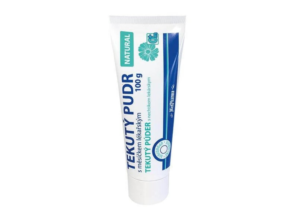 Tekutý pudr s měsíčkem lékařským chrání a zklidňuje pokožku. Díky obsahu oxidu zinečnatého mírně vysušuje pokožku např. při opruzeninách. Tlumí pocity pálení a svědění při kopřivce, po neštovicích, bodnutí hmyzem apod. Přispívá k regeneraci pokožky, vytváří na ní ochranný film, snadno se roztírá. Vhodné pro děti od narození.