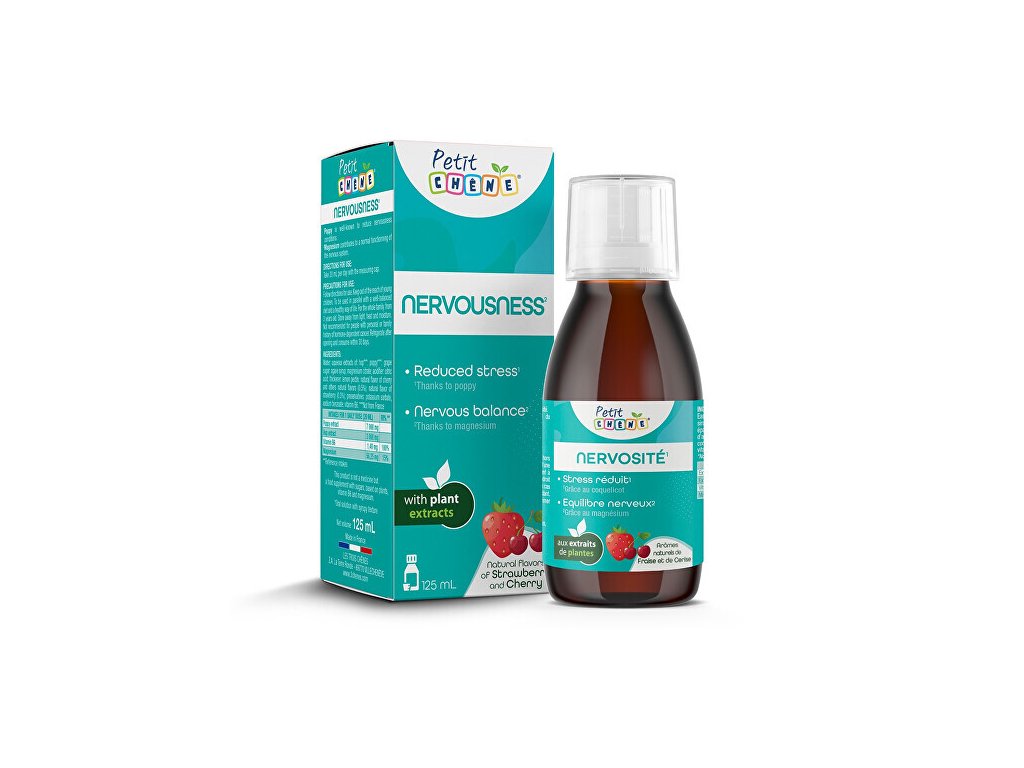 Sirup ke snížení nervozity u dětí - Nervousness kombinuje rostliny (mák a chmel), hořčík a vitamín B6 pro podporu klidu a snížení neklidu a stresu. Skutečná podpora, která doprovází celou rodinu při emoční nerovnováze spojené s každodenním životem. Sirup obsahuje lahodné přírodní a ovocné příchutě jahod a třešní pro více než 10 000 mg účinných látek denně.