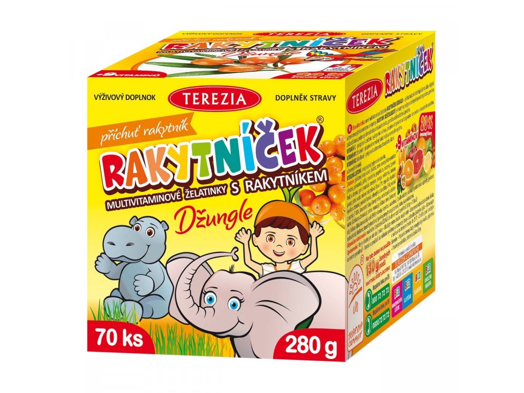 Výrobek RAKYTNÍČEK želatinky a jeho účinky nejsou založeny na obsahu vitaminů, ale na obsahu rakytníku, který je hlavní složkou výrobku včetně ovocné šťávy. Rakytník je přirozeně bohatým zdrojem vitaminů a biologicky aktivních látek a nemá stanovenou denní doporučenou dávku. Doporučujeme 3-5 želatinek denně.
