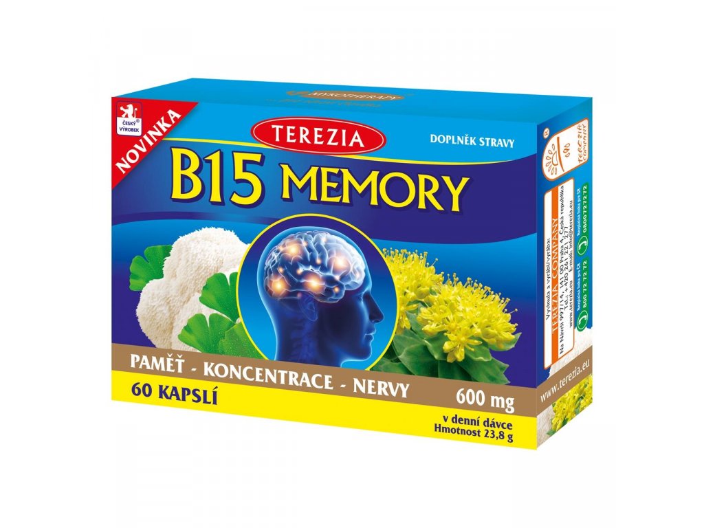 Čekají vás zkoušky nebo pohovor? Máte psychicky náročnou práci, ve které se každý den musíte správně rozhodnout a navíc si všechno pamatovat? Doplněk stravy B15 MEMORY je tu právě pro vás. Obsahuje totiž legendární houbu hericium, pivovarské kvasnice (obsahují kyselinu pangaminovou), ginkgo, kurkumu, rozchodnici a bakopu drobnolistou. Proč tato kombinace? Ginkgo napomáhá lepší mikrocirkulaci krve ve všech částech mozku a podporuje duševní rovnováhu. Bakopa podporuje koncentraci, paměť a schopnost učit se. Rhodiola stimuluje vnímání a pomáhá zahnat únavu. B15 memory je tak ideálním pomocníkem pro studenty, managery, seniory, ale také maminky na mateřské, které musejí zvládat miliony věcí najednou a přitom na nic nezapomenout.
