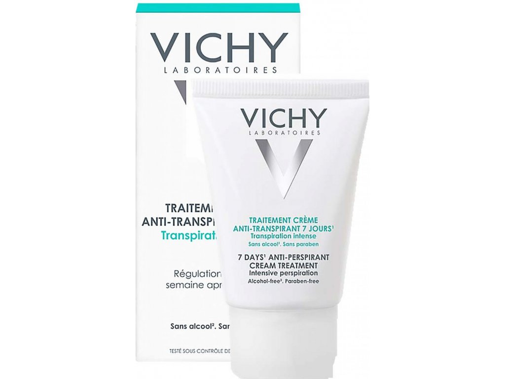 VICHY DEO Krémový antiperspirant - 7denní kúra proti pocení obsahuje jemné mikrosložky antiperspirantu nové generace. Tyto složky jsou dvakrát menší než tradiční aktivní látky určené k cílenému ovlivňování pocení v oblasti podpaží. Tento antiperspirant poskytuje pocit suchého a svěžího podpaží. Jeho účinnost byla vědecky prokázána, protože snižuje pocení a udržuje ho minimální týden po týdnu.
