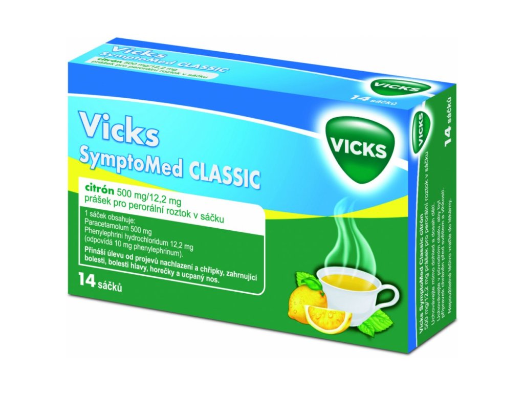 Vicks SymptoMed Classic citrón 500 mg/12,2 mg se užívá ke zmírnění příznaků nachlazení a chřipky, přináší úlevu od bolestí a bolesti hlavy, uvolňuje ucpaný nos a snižuje teplotu.